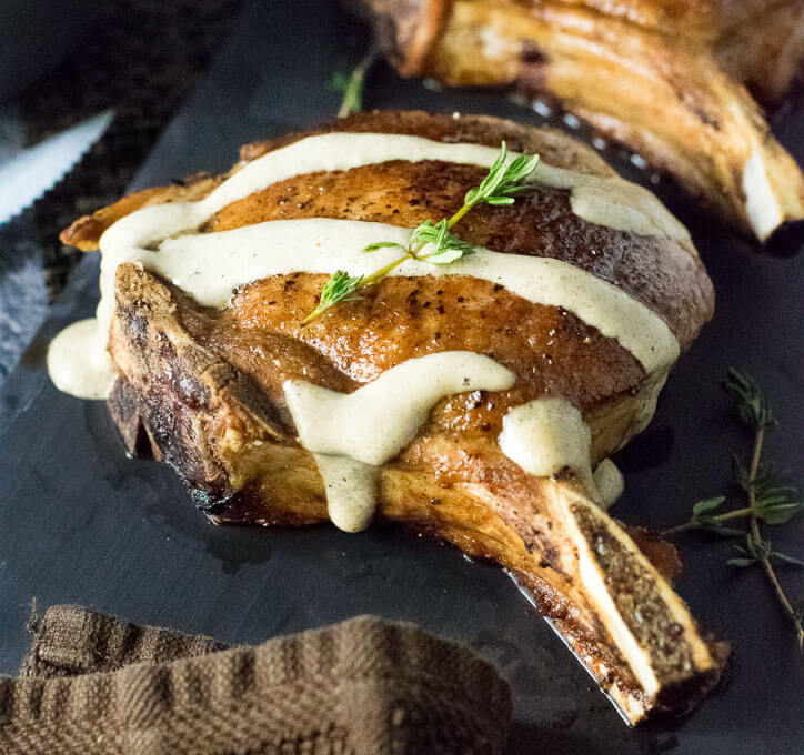 Chuletas De Cerdo A La Parrilla Con Salsa De Crema De Dijon