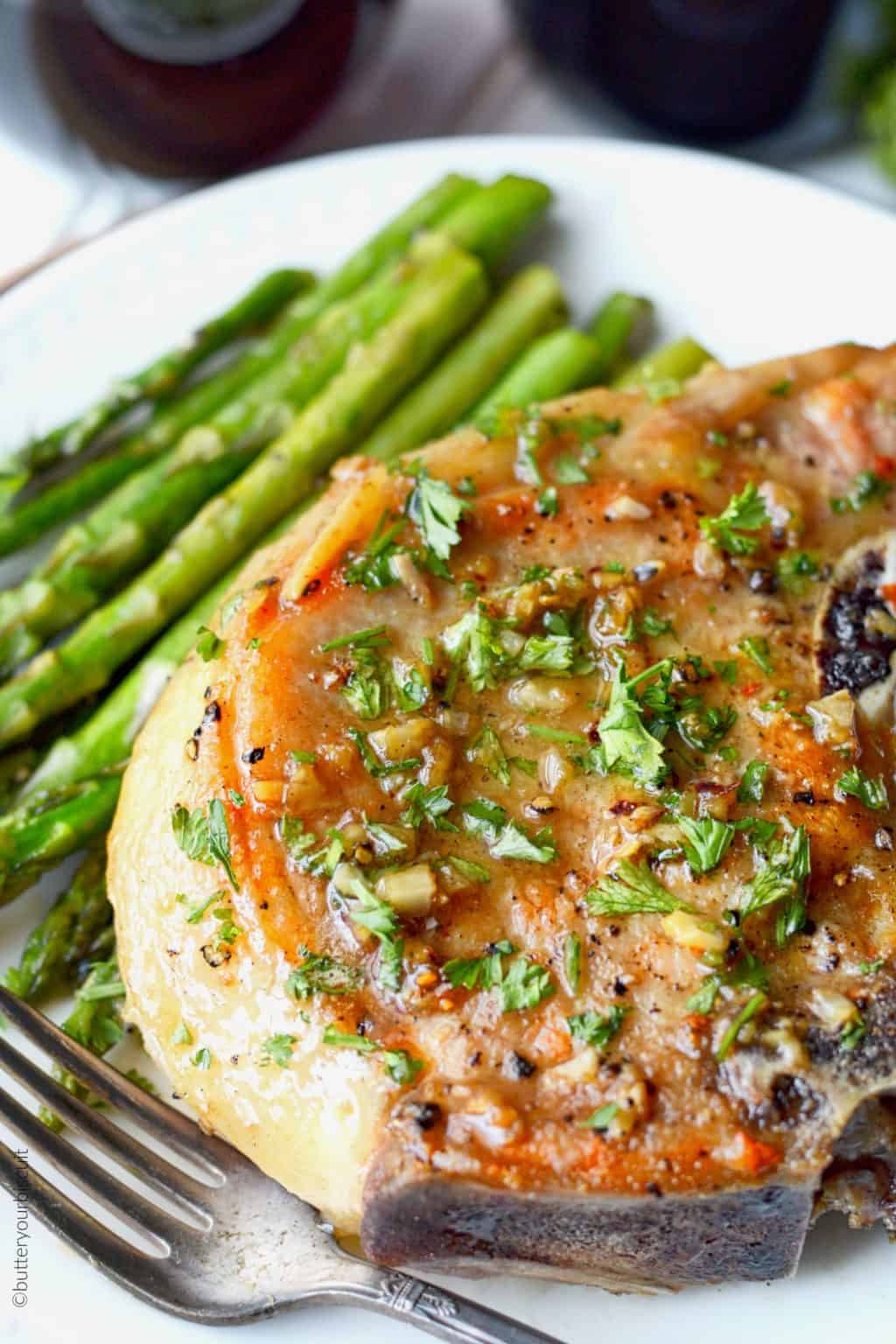 - Retire las chuletas de cerdo y deje reposar durante 5 minutos. ¡Decora con perejil fresco picado y sirve!