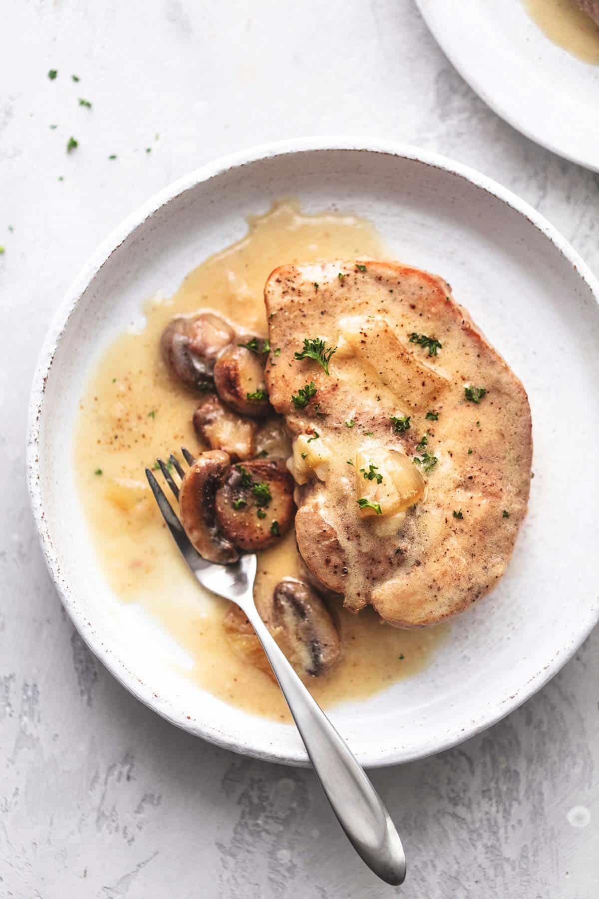 Para esta receta instantánea de chuletas de cerdo, usé las chuletas de cerdo más tiernas y gruesas que pude encontrar (si su supermercado no las tiene, pídale al carnicero que las corte por usted). Luego, los agrego con una salsa hecha de mantequilla, cebolla, champiñones, ajo, caldo y crema agria que está fuera de este mundo. Nunca podrás volver a mirar las chuletas de cerdo de la misma manera.