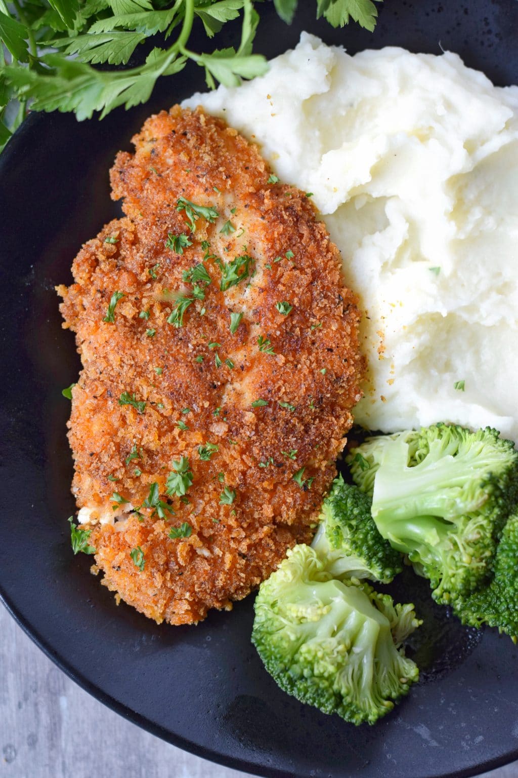 Me encanta usar pan rallado Panko, le dan la textura perfecta y el pan no se despega después de que se enfría. Te sorprenderá lo rápido que se encuentran. Servido con patatas, pasta, verduras o encima de una ensalada, no te puedes equivocar. Perfecto para una comida sencilla durante la semana.