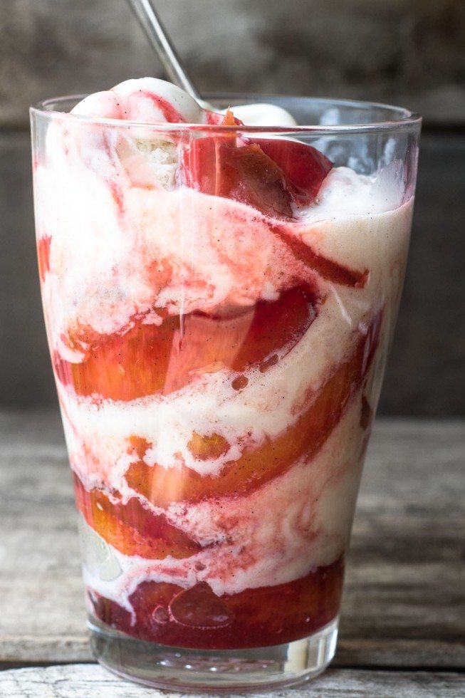 ¡No olvides pintar estas ciruelas horneadas con helado!