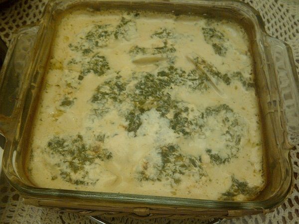 Mezclar la nata con la mezcla de sopa y verter sobre las patatas.