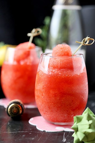 Tuve la oportunidad de descubrir esta bebida durante una de nuestras divertidas noches en Tokio. Ben y yo encontramos un bar a pocas cuadras de nuestro hotel en Shibuya y nos detuvimos para tomar una copa. Ella Fitzgerald estaba gritando por los altavoces, y los clientes tenían bebidas coloridas como camisas hawaianas frente a ellos. Una bebida en particular que se destacó fue el helado. Similar a un daiquiri de fresa congelado pero hecho con vino rosado, el frosé es dulce, brillante, ligero y afrutado. Como soy un gran fanático del vino rosado, inmediatamente me enamoré de la mezcla. Sabía tan bien que hice una nota mental para buscar una buena receta de helado al final de las vacaciones. ¡Quién sabía que los cócteles y el jazz se combinaban tan bien!