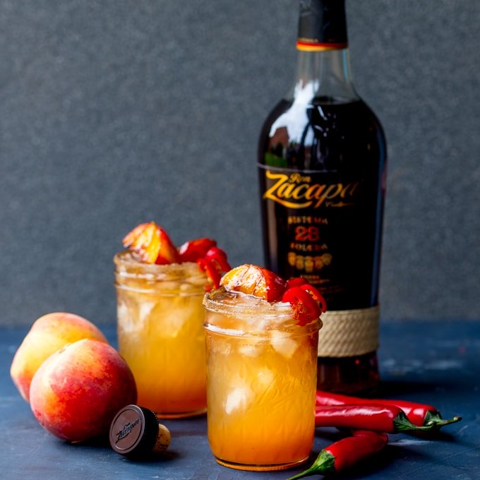 Cóctel de durazno y ron con salsa de pimienta – ¡Una bebida especiada y refrescante para una calurosa noche de verano!