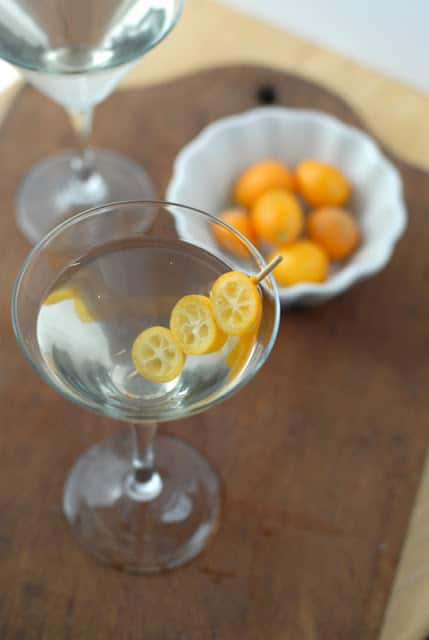 JENGIBRE Un toque de jengibre en un cóctel clásico. Decorar con kumquat cortado en rodajas en una brocheta. 2 oz de vodka de jengibre 1 oz de vermut Martini y Rossi Rosso Espolvoreado con lima amarga
