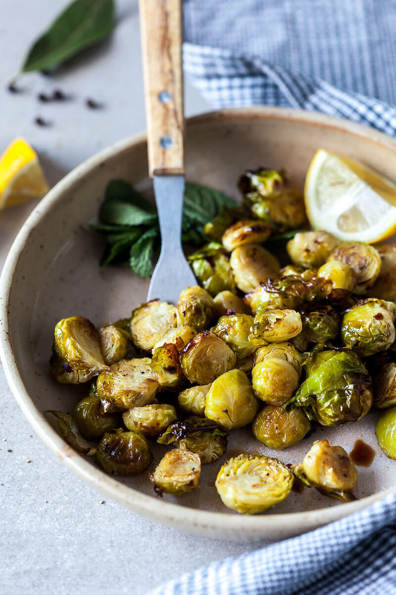 Las coles de Bruselas perfectamente asadas son un alimento básico para la preparación de comidas. ¡Fácil de preparar en pocos minutos, vegano y sin gluten!