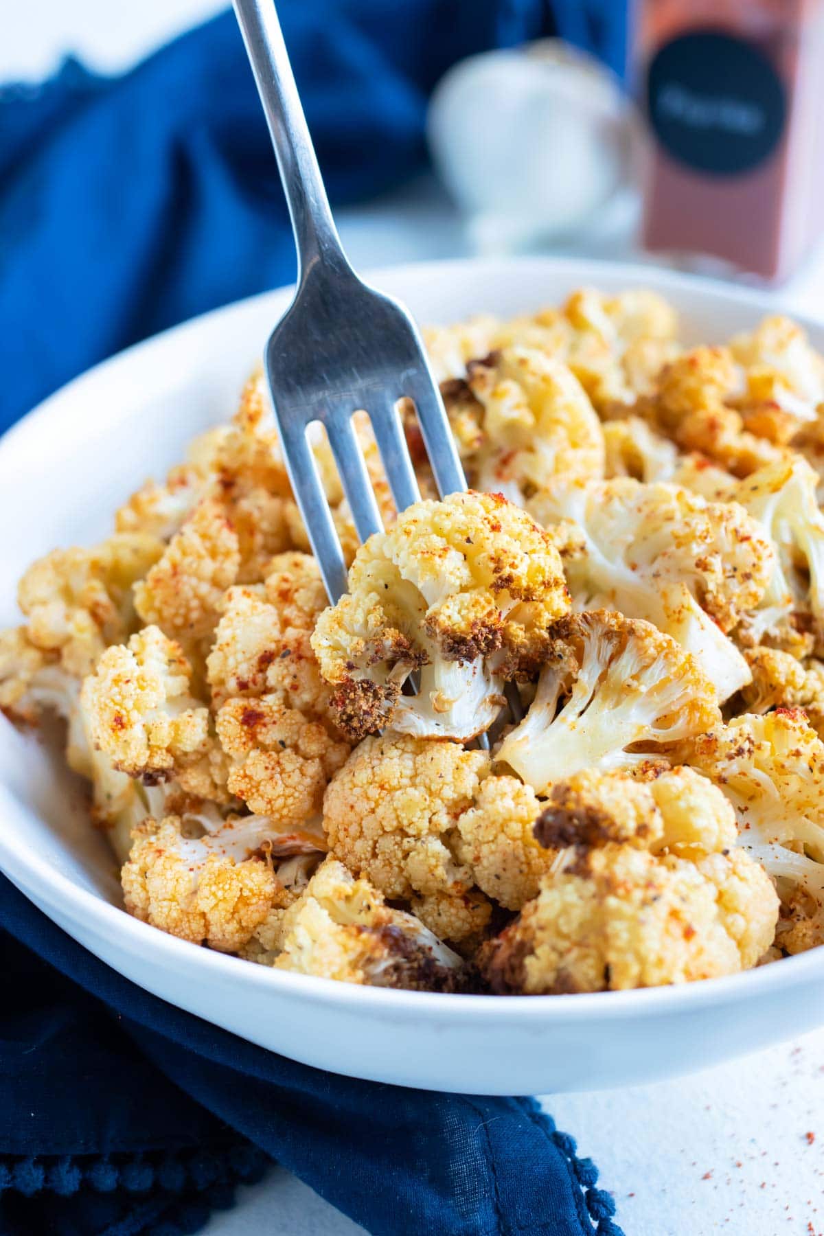 extra Crujiente coliflor freidora Es una receta de 15 minutos llena de sabor y MUY fácil de hacer. ¡Este se convertirá en su nueva guarnición baja en carbohidratos, cetogénica y vegana para las cenas entre semana!
