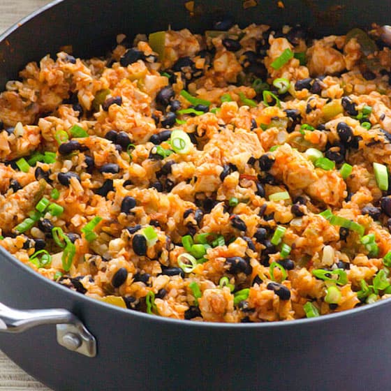 Dado que la mayoría de nosotros buscamos perder esos kilos de más después de las vacaciones, pensé que todos podríamos disfrutar de un clásico ligero y rápido. El arroz con pollo y coliflor y los frijoles son vegetales, ricos en proteínas y sabor, pero con menos carbohidratos.