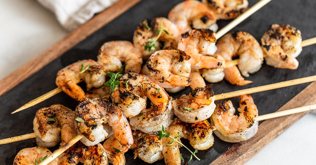 Por mucho que me guste el pollo a la parrilla, asar camarones es mucho más rápido. La parte complicada de cocinar camarones es que son pequeños, por lo que tienden a caerse de los estantes si no los asas en una brocheta. Asegúrate de remojar las brochetas de madera en agua durante 30 minutos antes de colocarlas en la parrilla para que no se quemen.