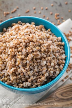 El trigo sarraceno es un superalimento que quizás no conozcas. Definitivamente está subestimado e infrautilizado en los EE. UU., ¡pero todos deberían saber lo saludable y delicioso que es! Además, ¡es completamente libre de gluten! Su nombre es un poco engañoso porque se llama trigo sarraceno, ¡pero no tiene nada que ver con el trigo! También es tan sencillo de preparar como el arroz blanco. A mi hijo le encanta el trigo sarraceno con salsa y a mí me encanta con mantequilla (pepinillos al lado, por supuesto).
