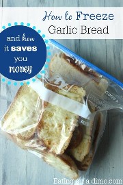 Ahora bien, hacer tu propio pan de ajo te ahorrará mucho dinero, pero si quieres ahorrar una cantidad increíble de dinero, busca pan “añejo” con descuento. En nuestra tienda de abarrotes local, siempre hay un estante de supermercado o un carrito lleno de panes con descuento de su panadería. Puedo obtener un pan francés por solo $ 0. 75 en lugar de $ 2- $ 3. Lo marcan porque la fecha “fresca” está a solo uno o dos días de distancia. Sin embargo, el pan sigue siendo genial.