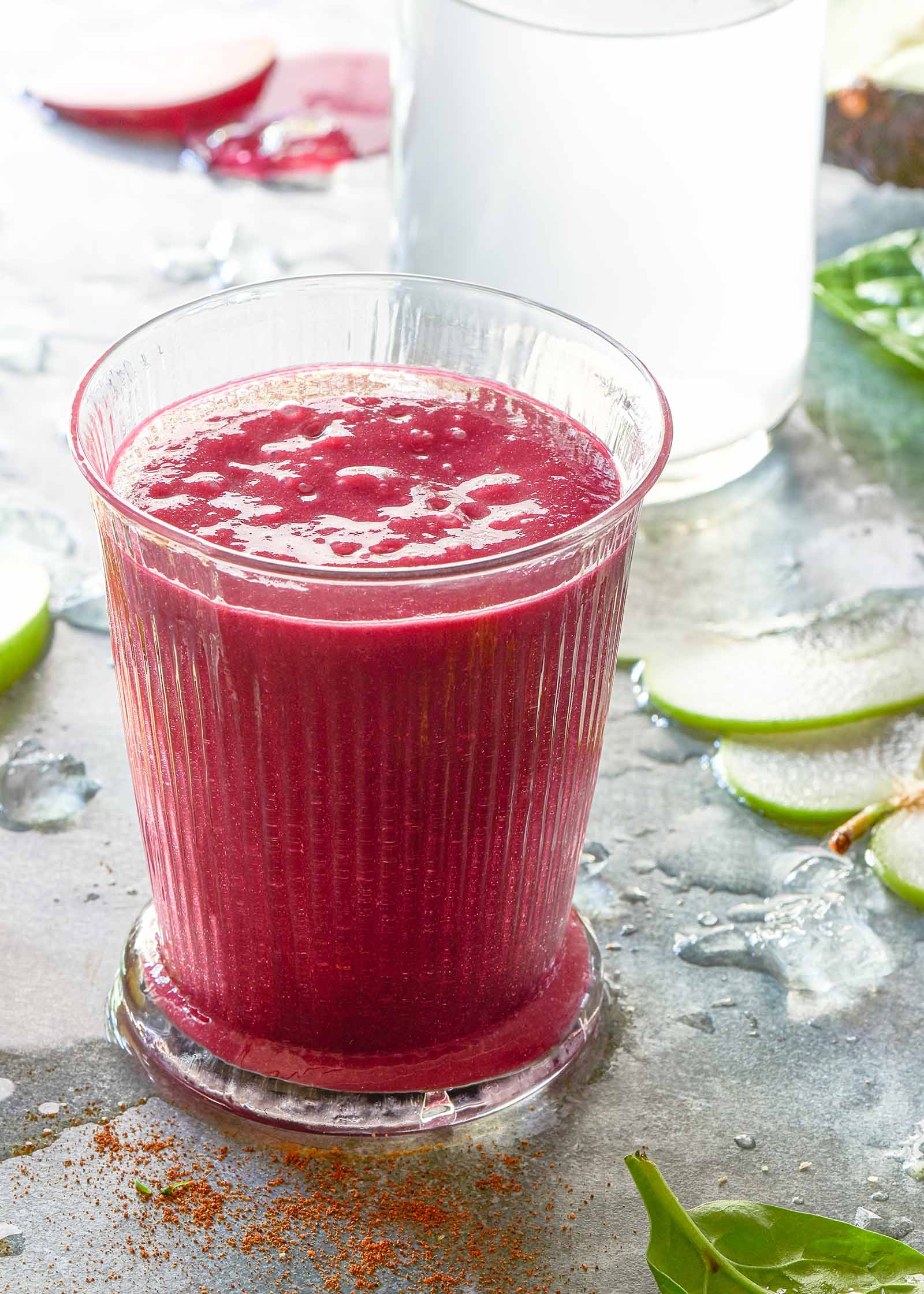- 1 remolacha cruda pequeña, pelada y cortada en cubitos (rallada para licuadoras convencionales)