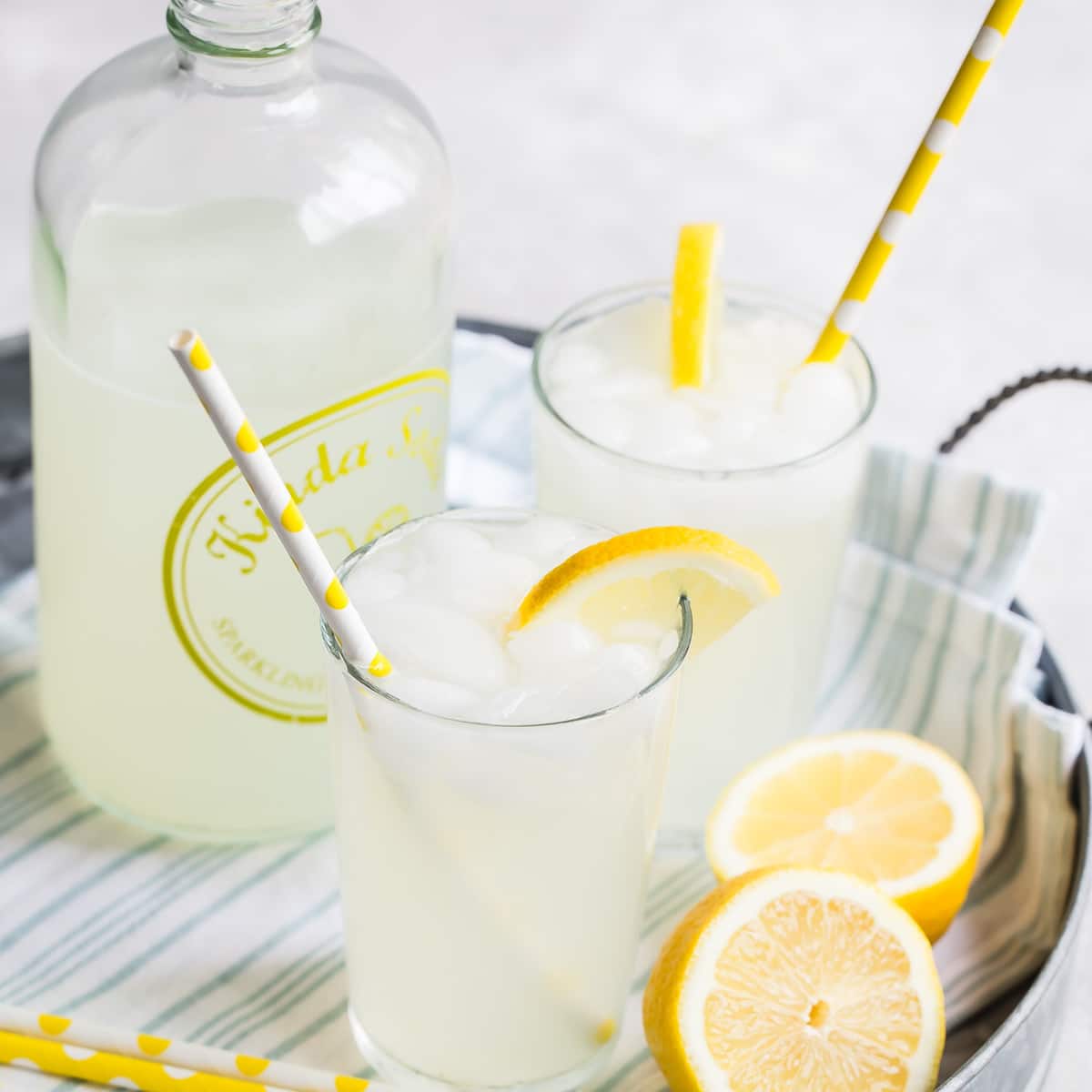 Limonada espumosa. ¡La limonada con gas es fabulosa! Mezcle el jugo de limón y el hielo junto con el azúcar, luego vierta en vasos llenos de hielo y cubra generosamente con agua con gas o agua con gas.