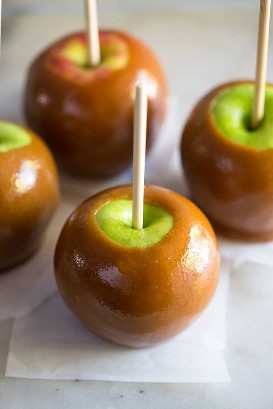 - manzanas Puedes usar cualquier tipo de manzana firme para hacer manzanas acarameladas, pero como el caramelo es tan dulce, es bueno elegir una tarta o una manzana blanda (no demasiado dulce) para contrarrestar el sabor. Buenas opciones incluyen Granny Smith, Fuji, Gala y McIntosh.