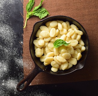 Los ñoquis son una bola de masa de patata que se utiliza en muchos platos italianos en lugar de pasta. Las mejores albóndigas tienen una textura ligera y esponjosa y no deben describirse como espesas. Es como comer almohadas de ángeles… Quiero decir, si los ángeles estuvieran durmiendo… Y tuvieran almohadas hechas de papas y harina… Hmm, de todos modos.
