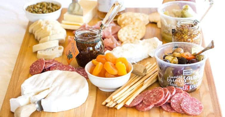 Porciones: 15 a 20 porciones Preparación: 20 minutos Total: 20 minutos Una fórmula simple para una fantástica tabla de quesos que incluye carnes, quesos, panes y algunos bocadillos dulces y salados.
