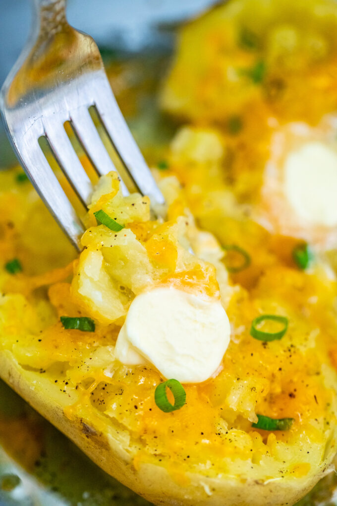 - Atender: ¡Cubra con crema agria y cebollines y sirva!