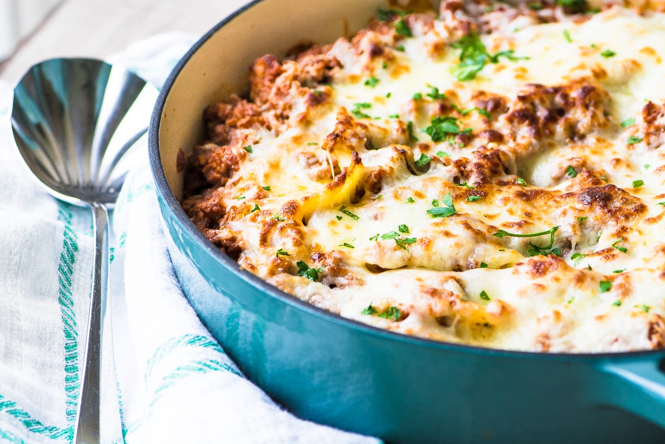 Me encantan las conchas rellenas, pero rara vez las hago porque parece haber demasiados problemas. La receta tiene que ser algo realmente especial para que la pruebe, y eso es todo. La salsa boloñesa, con sus dos tipos de carne y muchas capas de sabor, transforma una comida ya deliciosa en algo súper lujoso.