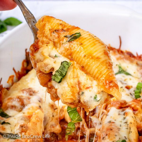 Las Conchas Rellenas de Ricota Jumbo son una deliciosa cena de comida reconfortante. El relleno de queso consta de tres tipos diferentes de queso y un poco de albahaca fresca y ajo.