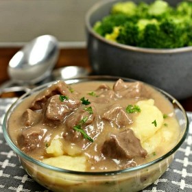Ahora bien, no siempre sobra porque esta receta es muy buena. Sin embargo, cuando lo hacemos… Me encanta hacer sándwiches abiertos. Esto es simplemente pan rebanado con deliciosos trozos de carne y salsa vertida por encima con puré de papas. No hay nada mejor que eso. Confía en mí. ?