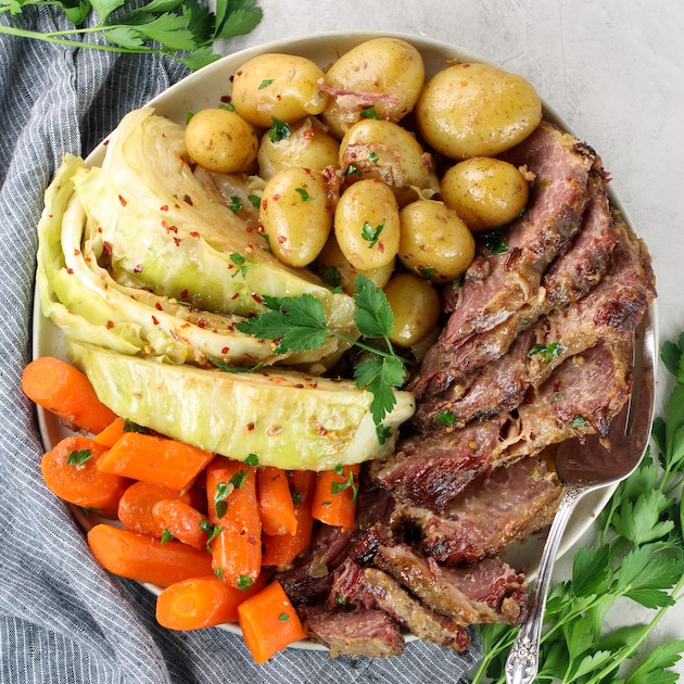 Probé una nueva versión este año para mi St. Patricio. yo suelo cocinar carne en conserva bajo y lento en el horno y servir con un salsa cremosa de rábano – ¡¡DELICIOSO!!