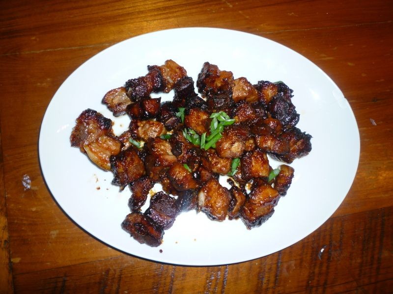 Coloque la mezcla en una bandeja para hornear y hornee a 180 ° C durante aproximadamente una hora o hasta que el cerdo esté tierno y glaseado. Revuelva ocasionalmente.