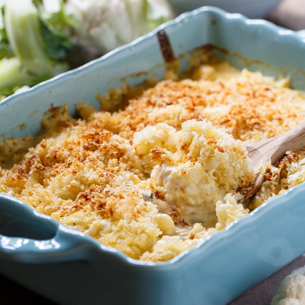 La coliflor es la verdura favorita de mi hija vegetariana, así que compro algo cada vez que voy al supermercado. Por lo general, lo come crudo o al vapor y lo pone en la sartén, pero me muero por hacer una cazuela abundante y cremosa con una cubierta de pan rallado crujiente.