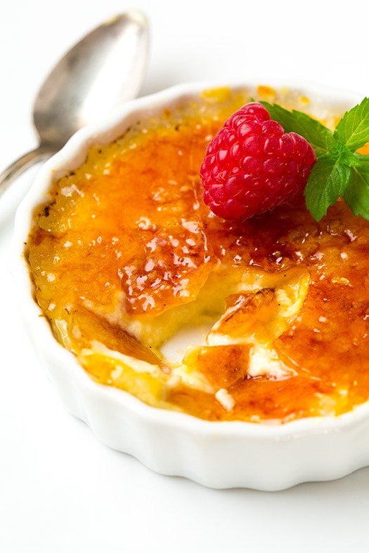 Postre con una costra de azúcar quemada por una antorcha Es uno de esos dulces que te hacen cantar el corazón. Es cremoso y tan delicioso, y ni siquiera me hagas empezar con esa corteza dulce caramelizada crujiente. Estos son el paraíso en todos los sentidos.