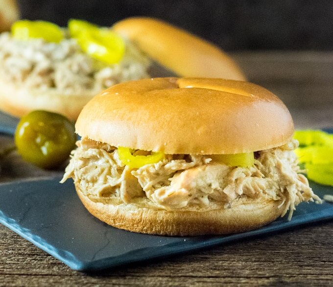 La gente a menudo piensa en las ollas de barro como electrodomésticos de invierno, que se utilizan principalmente para cocinar sopas abundantes. Yo uso mucho el mío en el verano porque puedes cocinar todo el día sin calentar la casa. ¡Me las arreglé para tirar todos los ingredientes para estos sándwiches de pollo crujientes de Mississippi en la olla de cocción lenta a la hora del almuerzo y estaba listo para comer para la cena!
