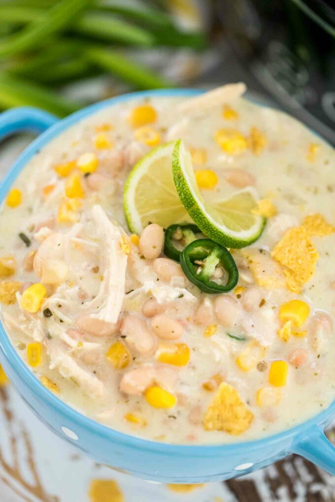 Crockpot White Chicken Chili es la mejor manera de hacer chili porque la cocción lenta hace que cocinar sea muy fácil. Este es el alimento saludable más saludable en su mejor momento.