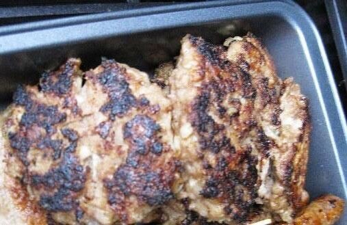 Mezcla la carne molida, la cebolla, la gelatina de menta y el huevo.