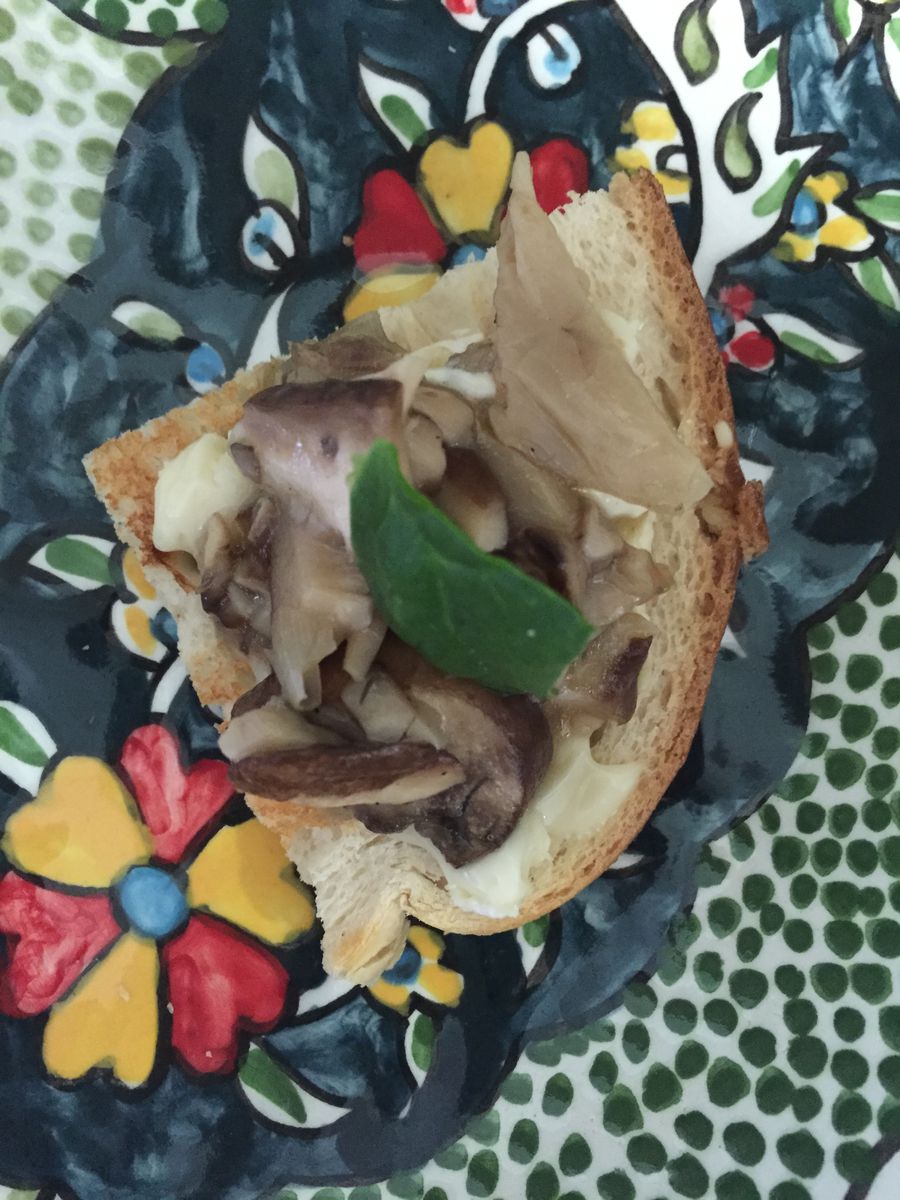Para armar: unte una cucharadita de mayonesa en cada rebanada de pan. Cubra con la robiola, esparciendo alrededor de los bordes, luego cubra con la mezcla de champiñones. Adorne con una pizca de albahaca y un chorrito de aceite de trufa, si lo desea. Servir caliente.