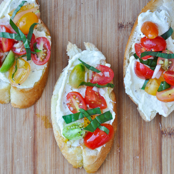sábado Crostini con tomates y queso feta batido y otros aperitivos sencillos