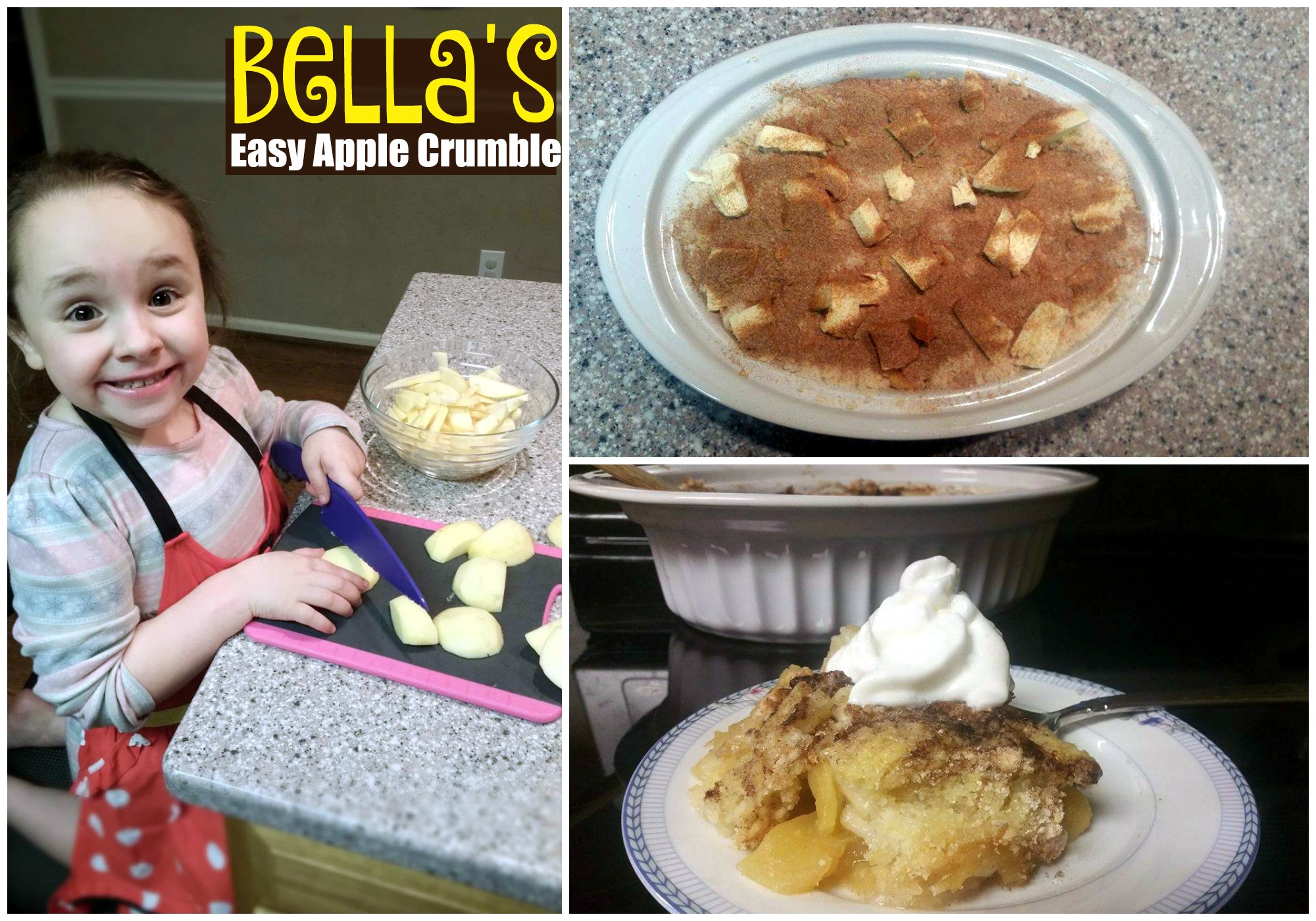 Lo más difícil de mudarnos a 2 horas de nuestra ciudad natal es estar tan lejos de nietos y nietas. ¡Mi dulce sobrina Bella tiene 5 años y está creciendo TAN RÁPIDO! ¡Ha desarrollado un amor por la cocina y eso hace que mi corazón entusiasta sea tan feliz! ¡Para Navidad, recibió un adorable delantal de Minnie Mouse, cuchillos para bebés y tarjetas de recetas! (¡Bien hecho, mamá!) ¡Ella hizo este Easy Apple Crumble sola y su mamá me tomó fotos! Que precioso verdad? ¡El chef más lindo de todos! ¡Esta es una gran receta para hacer con tus hijos! ¡La tía te quiere mucho, Bella! ¡Gracias por la excelente receta y las fotos para compartir con los lectores y amigos de nuestro blog!