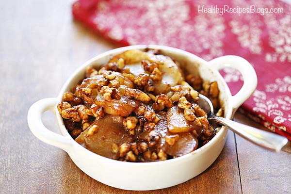 Mi versión es más simple y saludable. Hago esta receta sin avena. Para un crujiente delicioso, simplemente uso nueces picadas.