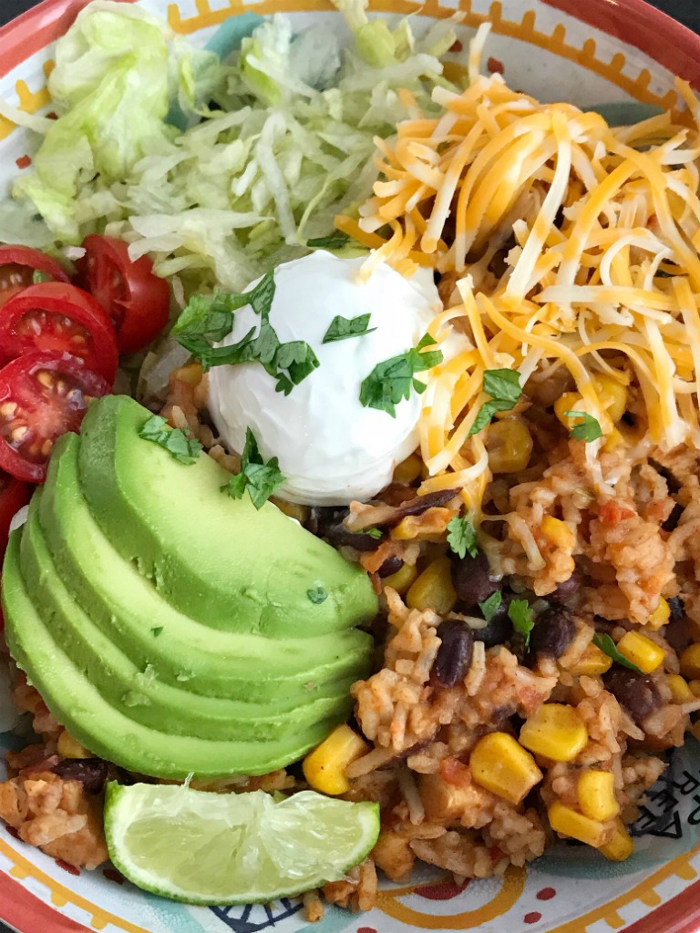 Cuencos instantáneos de burrito de pollo ¡Puede estar sobre la mesa en 30 minutos! Todas tus cosas favoritas de un burrito, pero convertidas en un delicioso tazón de burrito. Cubra con lechuga, queso, tomate, aguacate para una cena rápida y fácil aprobada por la familia. Si buscas lo mejor receta instantanea de pollo ¡asi que aqui esta!