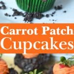 Las magdalenas de chocolate están hechas con una mezcla de magdalenas, con algunos ingredientes agregados para que queden súper húmedas. Un glaseado de chocolate simple, galletas Oreo picadas y una fresa bañada en chocolate que parece una zanahoria. ¡Estas magdalenas se juntan muy rápidamente usando solo un tazón y tienen resultados fenomenales!
