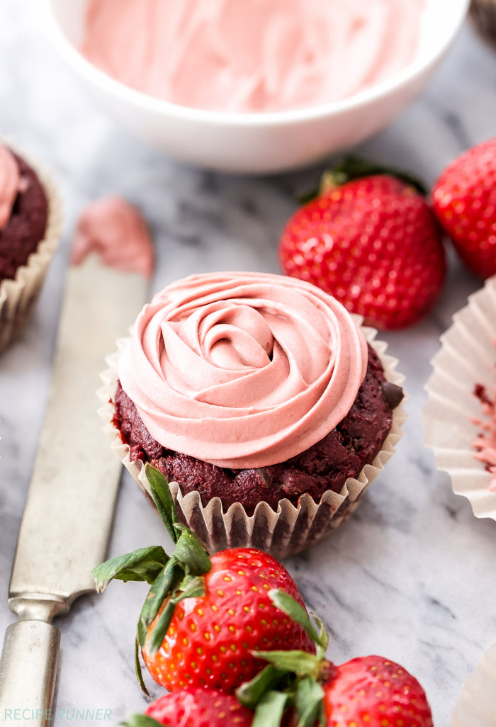 Cupcakes Red Velvet de Remolacha con Crema Batida de Fresa y Coco