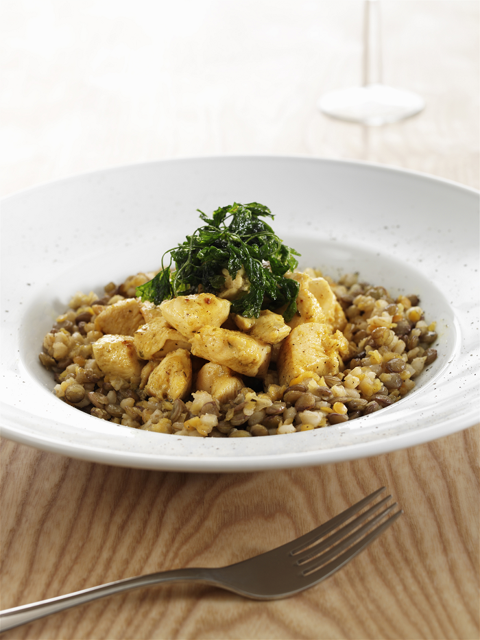 4. Agregue las lentejas al pavo o al pollo y mezcle bien.