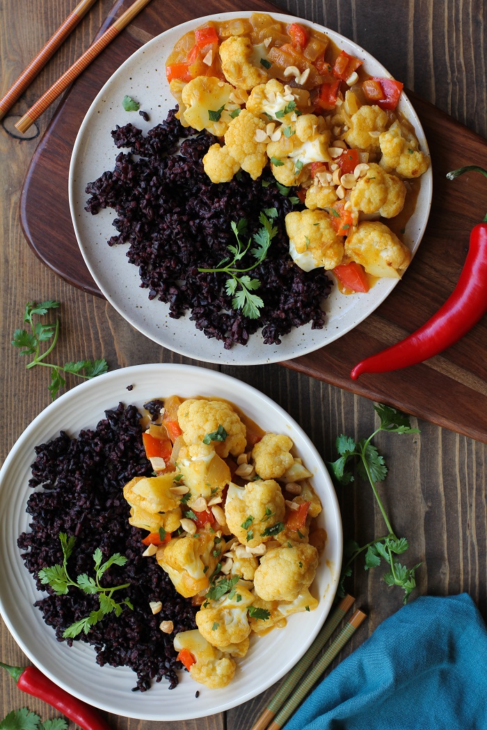 Disfruté el curry de arroz (negro) prohibido… no se asuste. No dejes que arruine tu cabello o arruine tu día. Si no conoces el arroz prohibido, te recomiendo que lo pruebes, tiene un sabor a nuez y es un poco pegajoso como el arroz blanco. También puedes reemplazarlo con cualquier grano de arroz que tengas a mano, o simplemente caminar por el lado salvaje y hacer lo prohibido.
