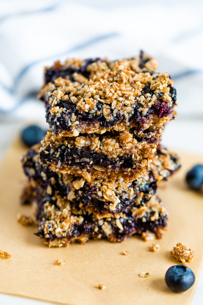 He estado en una patada de arándanos este verano. Creo que esto es lo que sucede cuando su esposo recoge arándanos y trae a casa kilos por kilos de arándanos frescos. De hecho, dejamos la fruta en el mostrador durante aproximadamente 24 horas, recogiendo puñados cuando nos apetece. Así que decidí convertir algunos de ellos en un bocadillo saludable y terminé con estos barras saludables de arándanos desmenuzadas.