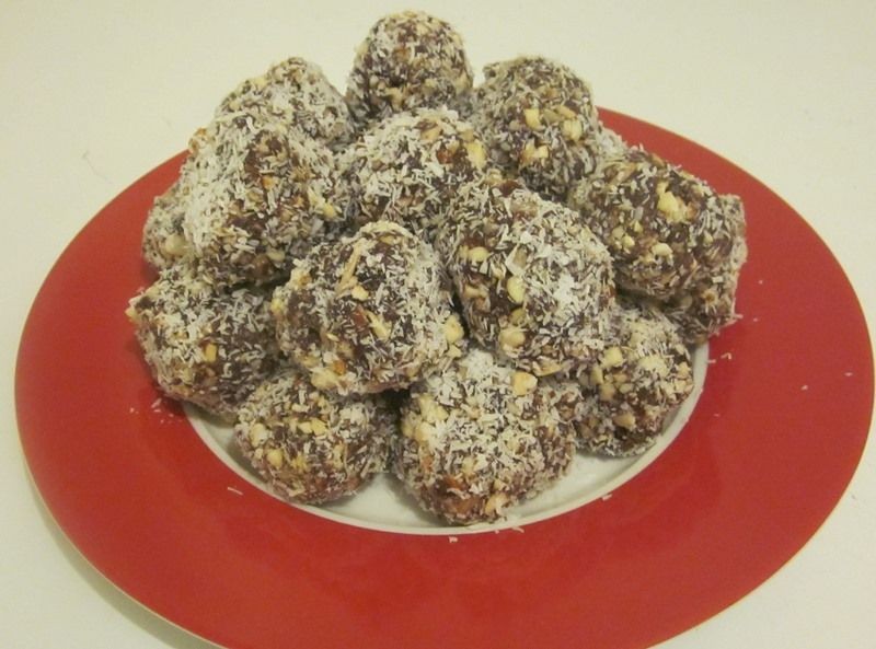 Para ahorrar tiempo haciendo rodar bolas de coco en un plato, tome una bolsa con cierre hermético y coloque el coco en la bolsa, luego agregue las bolas (alrededor de 6 a la vez, o tantas como pueda con espacio para moverse). Acomodar la bolsa, agitar el coco y listo, y guardar enrollando un plato uno a uno. Use sultanas o pasas.