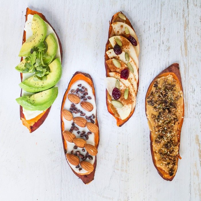 Bien, cuando tu tostada de camote esté cocinada a la perfección, estarás listo para la parte divertida: ¡los ingredientes!