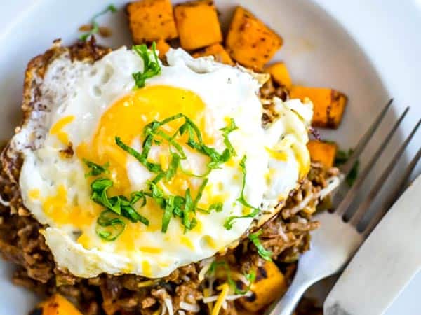 Este desayuno de patata dulce Sloppy Joe lleva más tiempo que la receta de desayuno promedio, pero la buena noticia es que puede prepararlo la noche anterior si lo desea. Sloppy Joe se calienta muy bien y puedes hervir la batata, lista para ser chamuscada en mantequilla a la mañana siguiente. O si es fin de semana puedes hacerlo todo en la misma mañana, todo depende de ti.