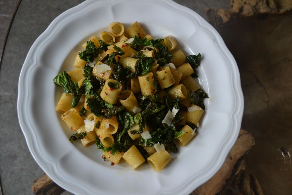 Mezcle el repollo en una sartén con un poco de pasta, ajo aromático, aceite de oliva virgen extra y algunos chiles y listo. —Julia Lee Tambor