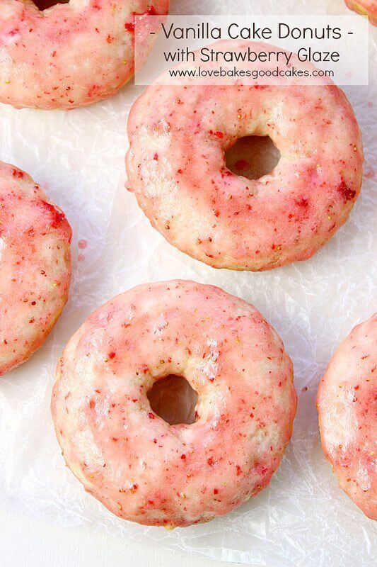 Mi mente está pensando en todas las cosas de la primavera. Es solo mi estación favorita. Como estoy en modo Primavera, he querido compartir una rosquilla de pastel de vainilla suave y húmeda con un glaseado de fresa fresca. Estas donas de vainilla cubiertas de fresa parecían gritar “¡Primavera!” ¡Son perfectos para un desayuno de fin de semana y son súper fáciles de preparar! Todo lo que necesitas es una bandeja de donas y algunos ingredientes comunes. ¡Desde que he estado en Arizona, las fresas locales frescas ya están en las tiendas! ¡Guau! ¡Espero que comience a ver fruta local fresca en sus tiendas si aún no lo ha hecho!