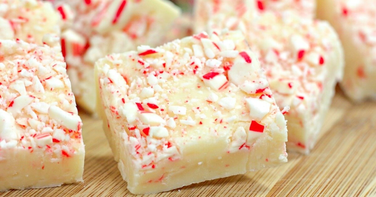 ¡Este Candy Fudge festivo es una receta cremosa de chocolate blanco oscuro con menta y una capa de bastones de caramelo crujientes encima! ¡Solo 3 ingredientes!