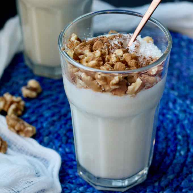 Servir caliente añadiendo nueces picadas y una pizca de canela por encima.