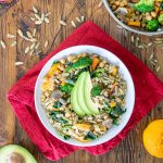 Lo realmente bueno de este tazón es que, literalmente, todos los ingredientes son reemplazables. Sé que los supermercados no están completamente abastecidos con todo lo que queremos en estos días y todos estamos tratando de que nuestros ingredientes duren entre viajes, por lo que este tazón es extremadamente flexible: puede usar quinua o maíz en su lugar. un poco de arroz, puede omitir el aguacate o el chile, puede agregar bayas u otras frutas, puede cambiar las especias, e imagino que seguirá siendo delicioso y lleno de nutrición para apoyar el sistema inmunológico.
