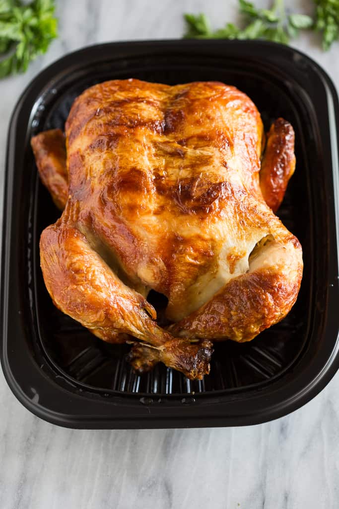 Cada vez que vamos a Costco, me encanta comprar uno de sus hermosos y grandes asadores por $4.99. Por lo general, puedo obtener 4-5 comidas de este pollo asado, además puedo usarlo para hacer una gran cantidad de caldo de pollo.